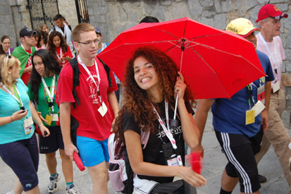 Gente. Mochilas. Palavras. Espera. Segóvia. Calor. Bandeiras. Cantos. Alegria.